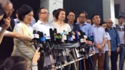 2019年7月2日泛民派议员在立法会外面举行记者会就7.1事件表态 (美国之音记者申华报道)
